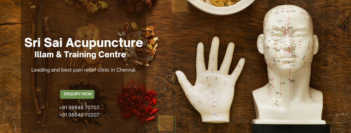 Sri Sai Acupuncture illam & Training Centre is an integrated holistic healing and training centre founded in 2015 at Chennai. We are specialized in Acupuncture, Acupressure, Sujok, Varma, Clinical Hypnosis and Energy Healing. We are one of the leading and best pain relief clinic in Chennai. Our intention is to create healthy society with integrated holistic healing.